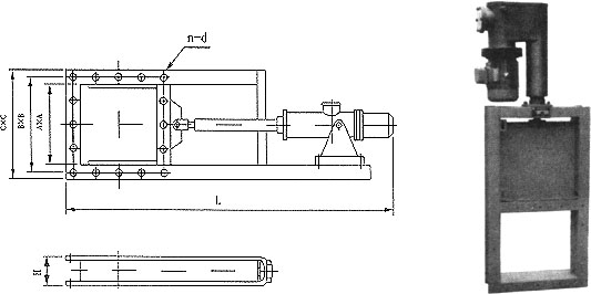該閘閥主要由框架、閘板、電液裝置等零件組成。工作時,活塞桿受液壓力作用帶動閘板作水平方向的往復(fù)運動,達到閘門的啟閉目的。